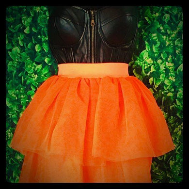 (SOLD) Neon Fluorescent Orange Tulle Skirt Retro Vintage