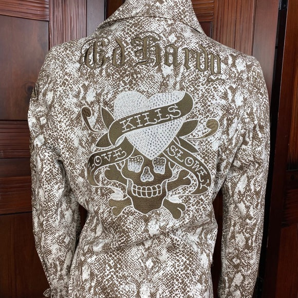 Ed Hardy “Love Kills Slowly” Women’s Reptile Print Blazer Jacket Coat