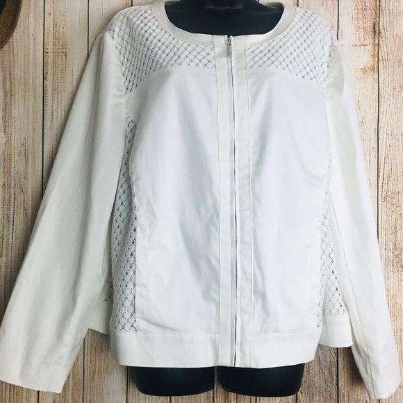 Roz & Ali Women’s Casual Business Jacket Size 2X Embroidered White Zip Up Pockets.