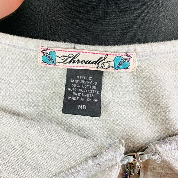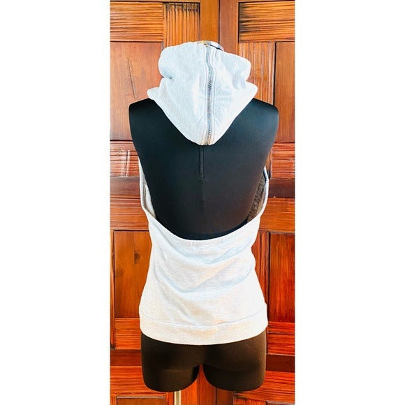 Thread Halter Open Back Zip Up Hoodie with Metallic Rainbow Zipper on Hood and Closure