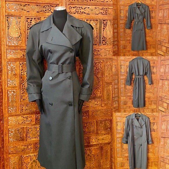 Vintage Degrees Khaki Green Trench Coat Shoulder Pads