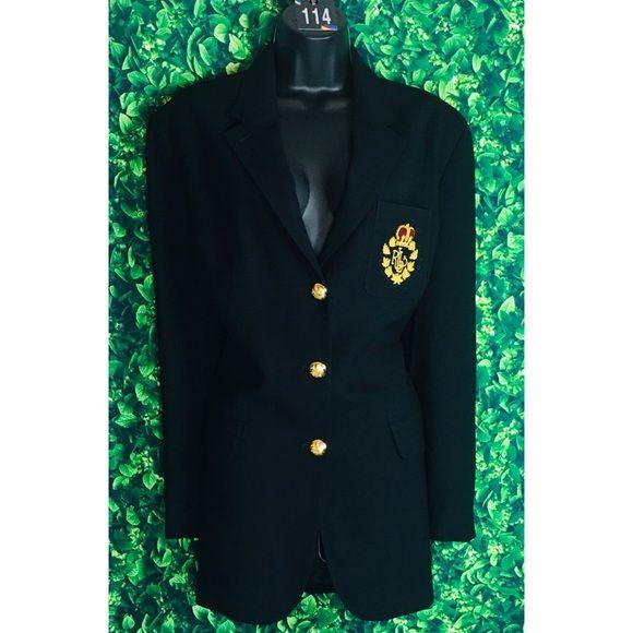 Lauren Ralph Lauren Crown Crest Blazer, three dimensional velvet crown and metallic gold threading. Light shoulder padding. 🛍