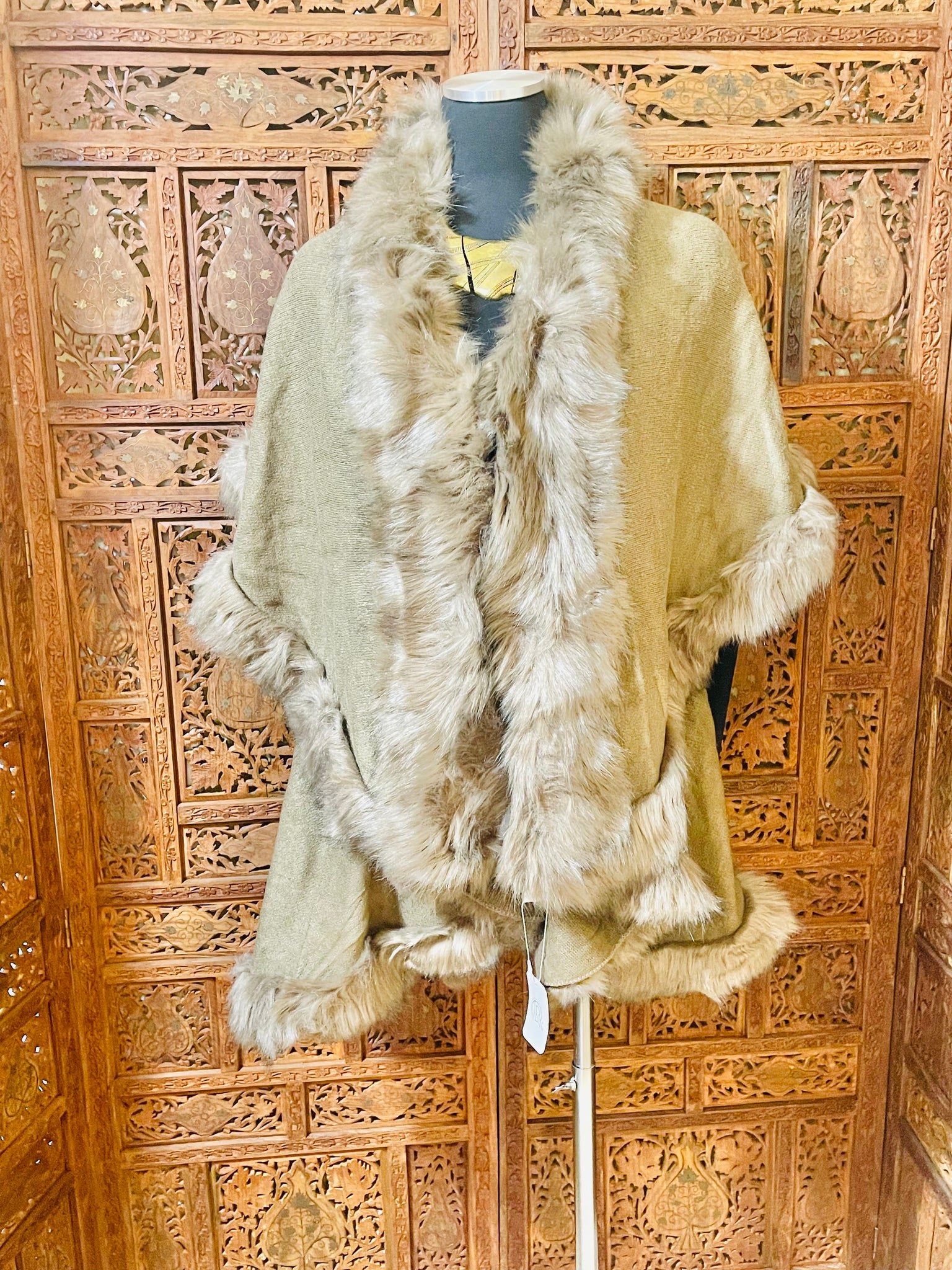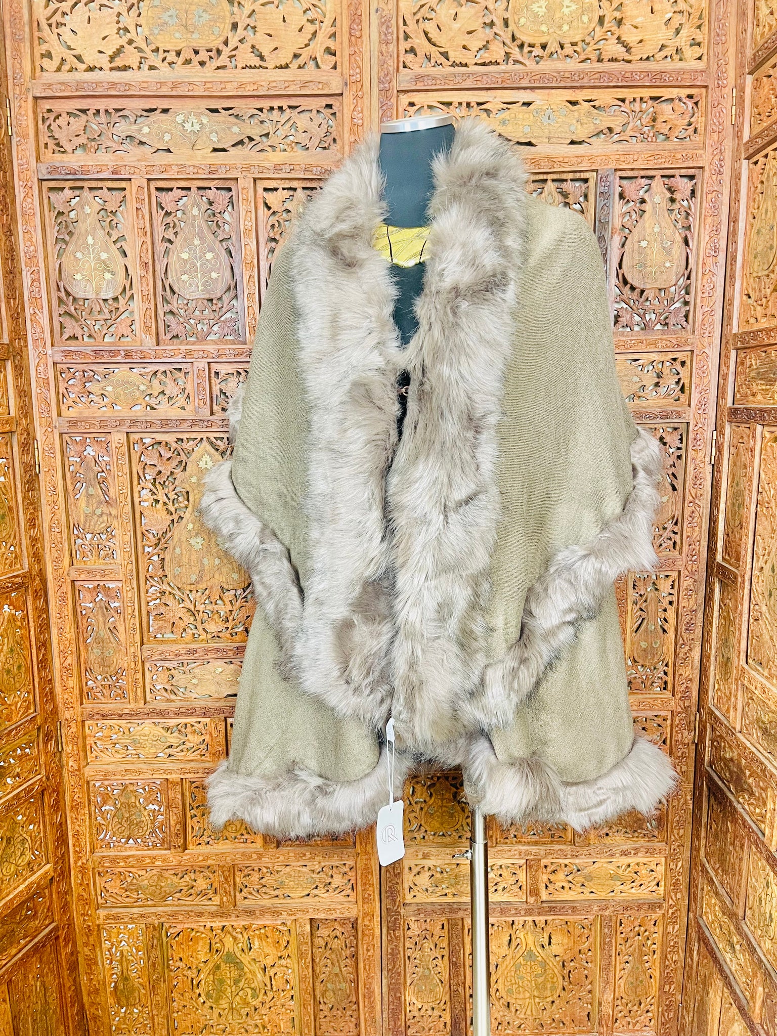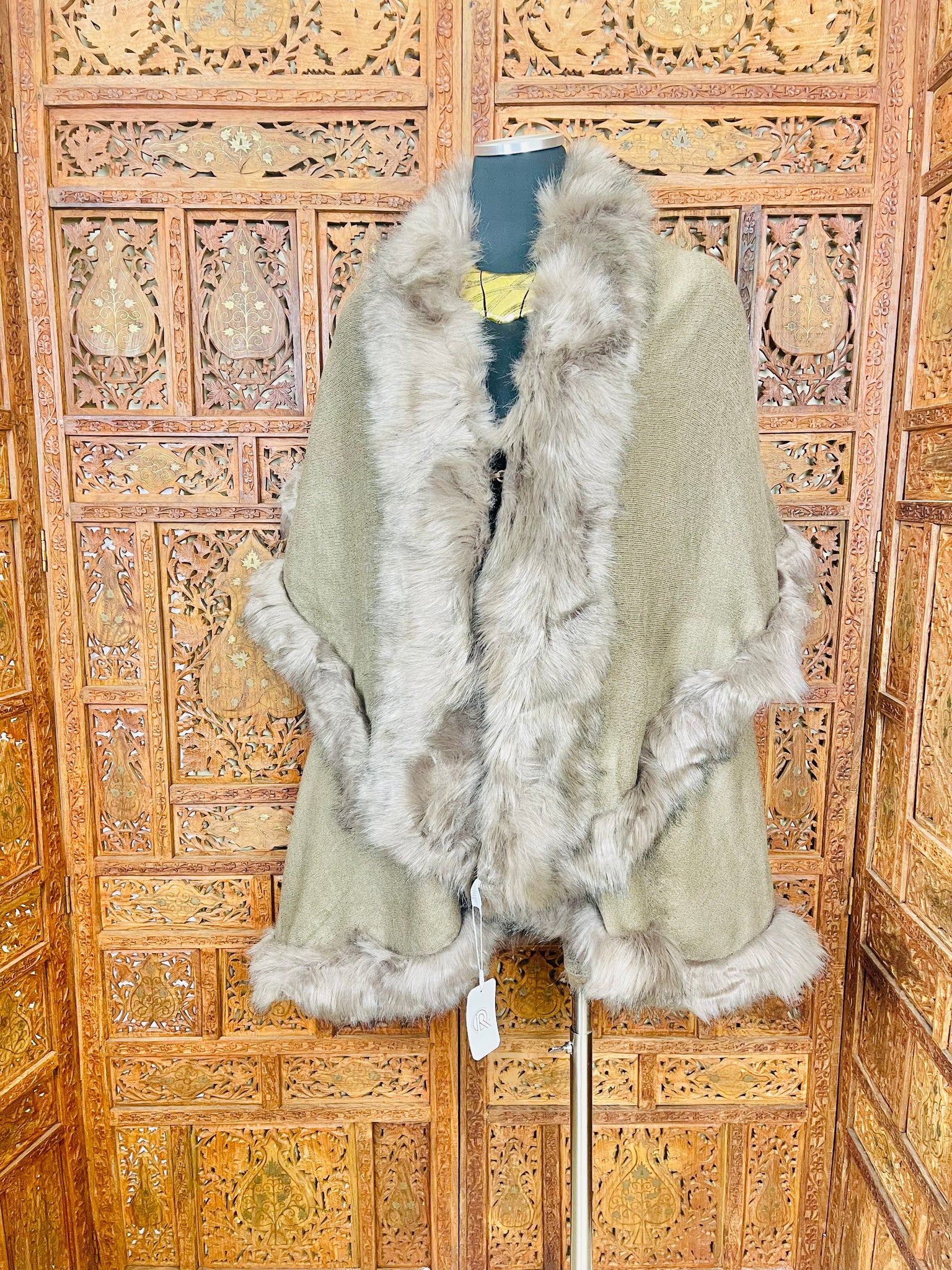 Women’s Cloak Shawl Faux Fur Trim Poncho Jacket Sweater