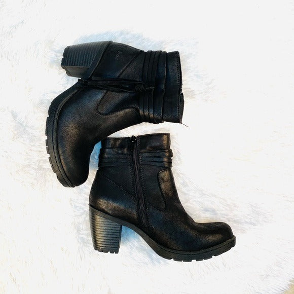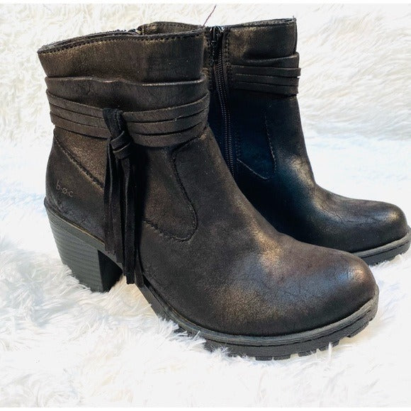 b•ø•c Leather Tassel Ankle Boots with Zipper Closure block heel