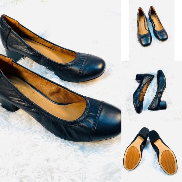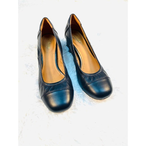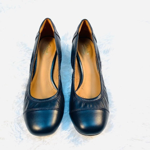 Clarks Navy Ballerina Block Heel Pumps NWOB NWOT