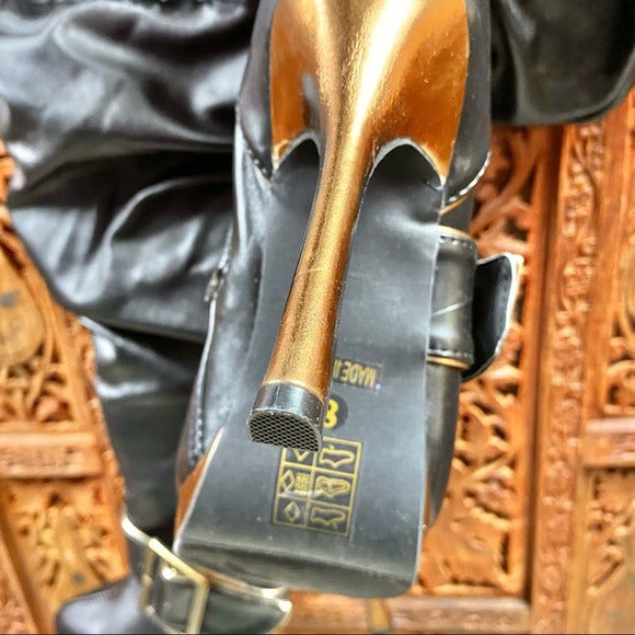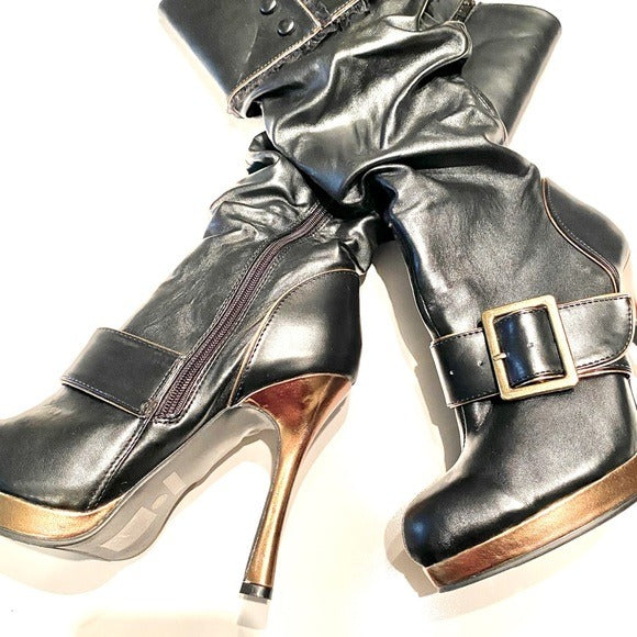 Ellie Women’s Steampunk Stiletto Platform Slouch Boots NWOT NWOB Cuffed with Four Buttons, Zipper Closure