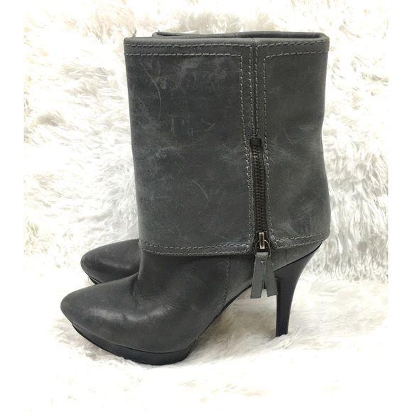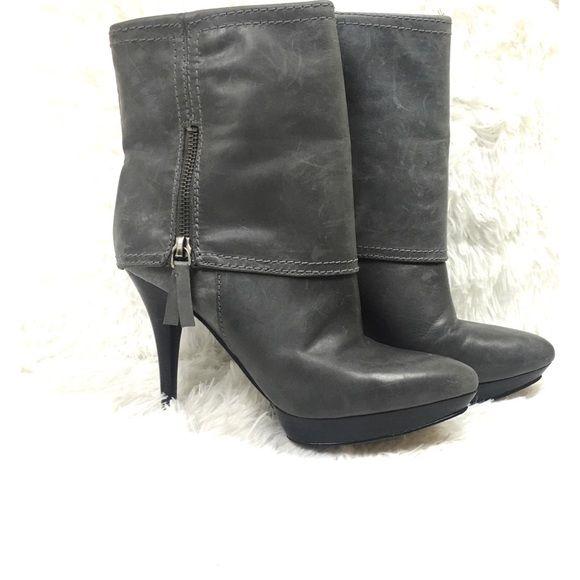 Nine West Women’s Gray Leather Fold-Over Booties 5inch heel with platform 🛍