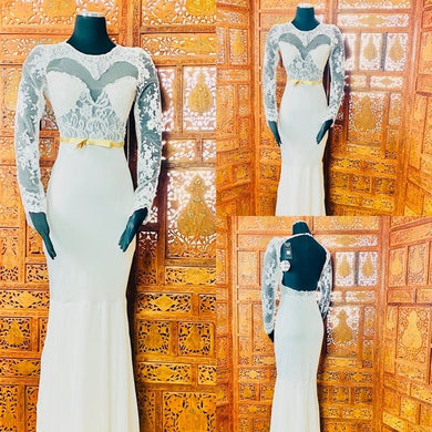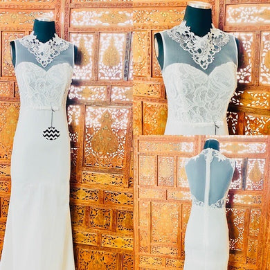 Beach Wedding Dress Mermaid w/Illusion Sleeves NWT