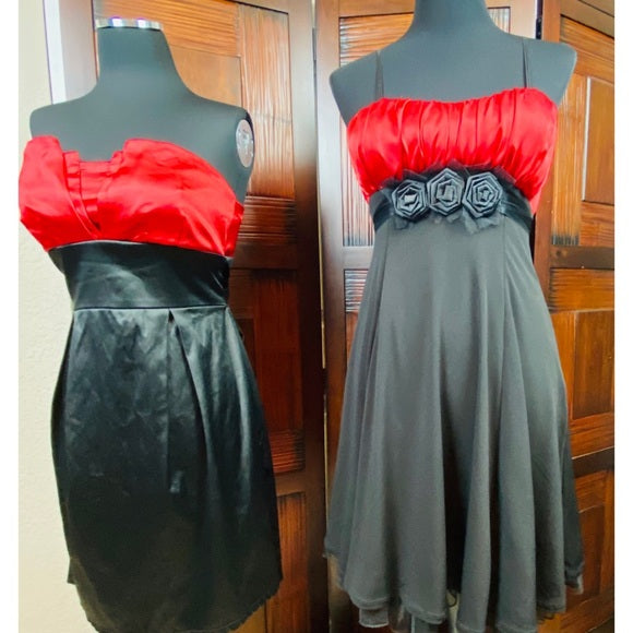 Trixxi Satin Strapless šŸ”„Fire Red & Black Mini Dress Party Cocktail Holiday Formal Dress