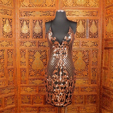 Women’s Rose Gold Sequin Beaded Mini Dress
