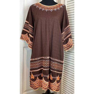 Beautiful Brown Embroidered Linen Dress
