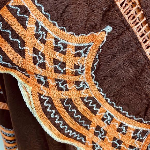 Beautiful Brown Embroidered Linen Dress