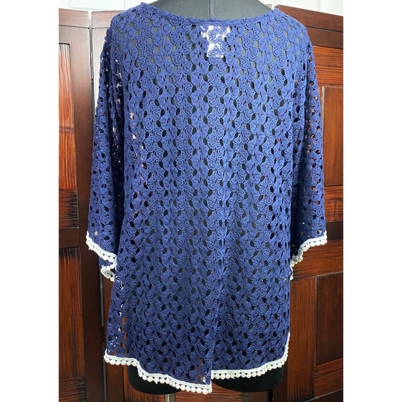 Lavish Women’s Hand Knit Navy with White trim Shawl Poncho