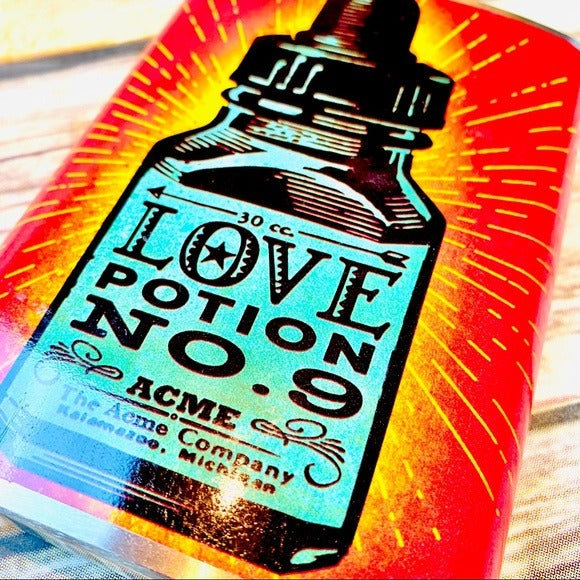 Totally Rad Love Potion Number No. 9 Stainless Steel 8 Oz Flask Wrap Around Artwork on both sides. NWT