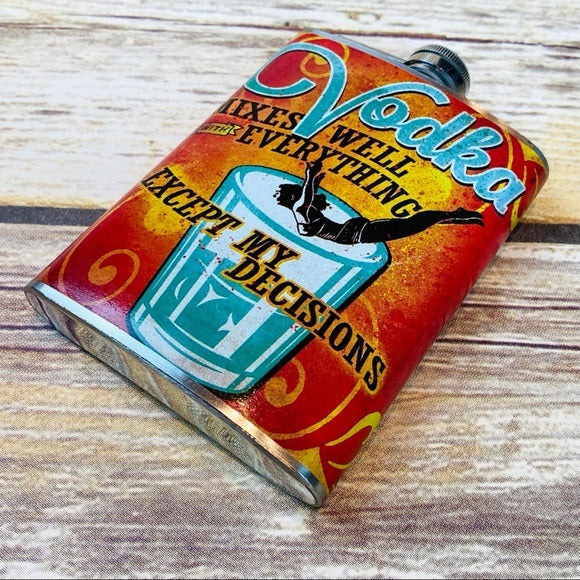 Totally Rad Vodka Mixes Well with Everything Except My Decisions Flask NWT