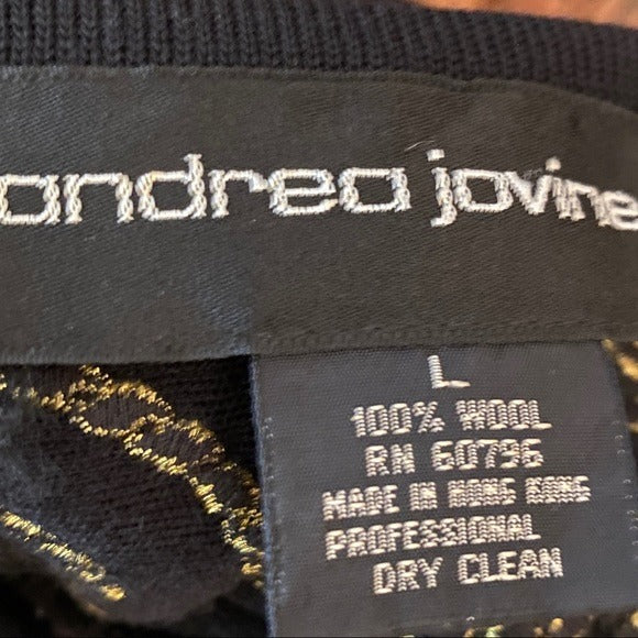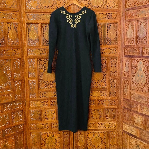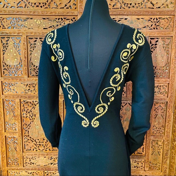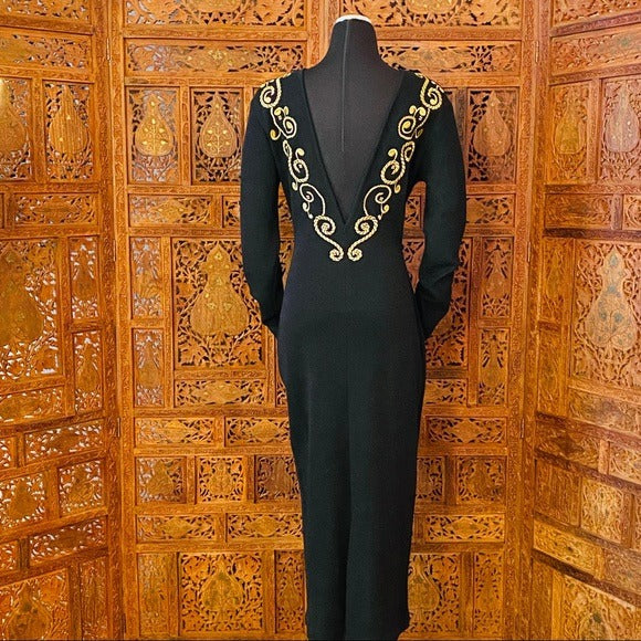 Vintage Andrea Jovine Women’s Gold Stitched Beaded Plunging V-Back Sweater Dress