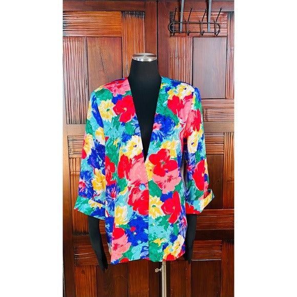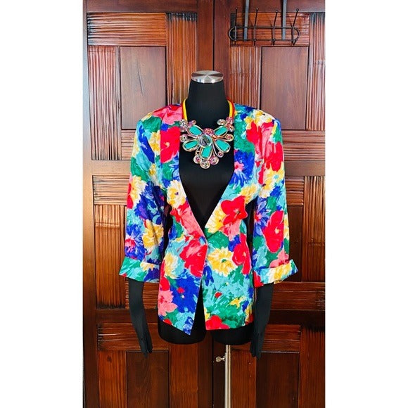 Vintage Frayne Floral Print Blazer with Shoulder Pads