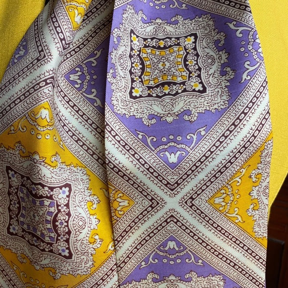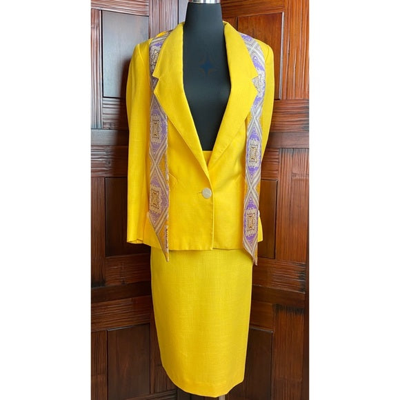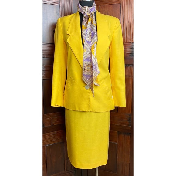 Vintage J. Gallery Skirt Suit Set ⚜️Elegant Scarf Tie🌞Yellow Skirt Suit with One Solid Button closure Two pockets and diagonal buttons on right and left side