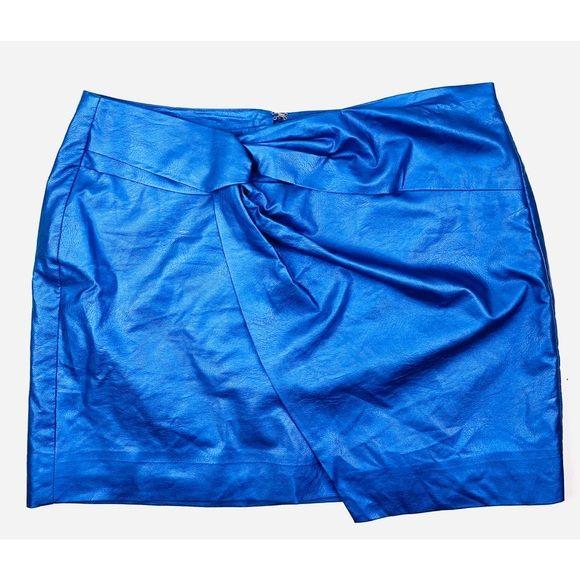 Bar III Women’s Metallic Faux Leather Blue Mini Skirt