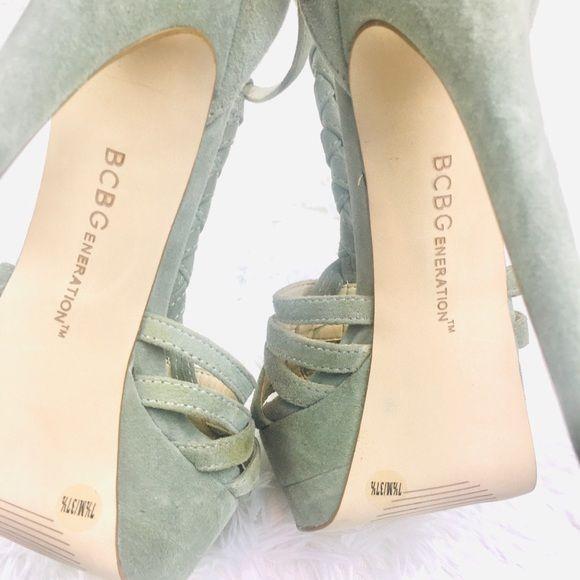 🛍 BCBGeneration Light Blue Suede Platform Heels Pumps Vixen Open Toe Braided Stiletto heel
