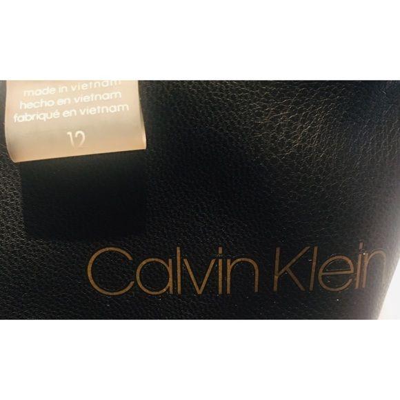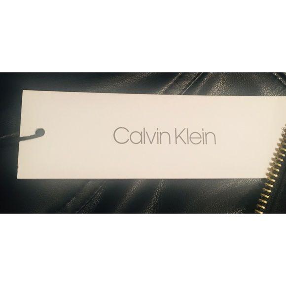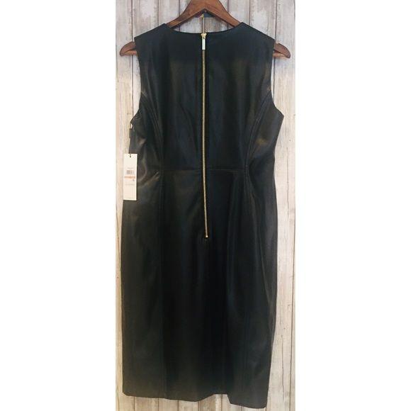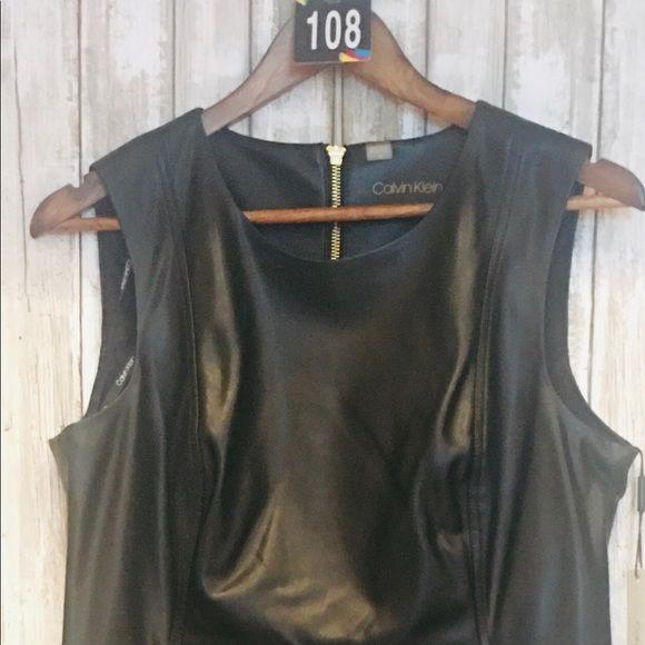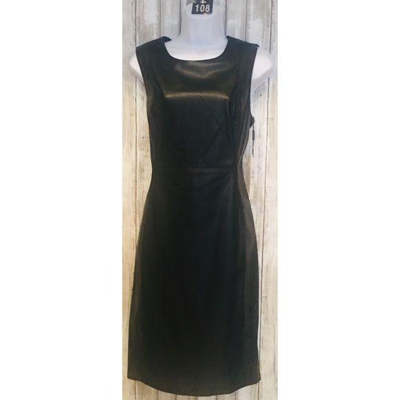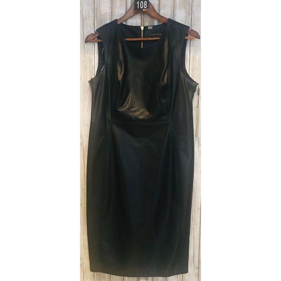 Calvin Klein Sleeveless black faux leather sheath dress size 12.