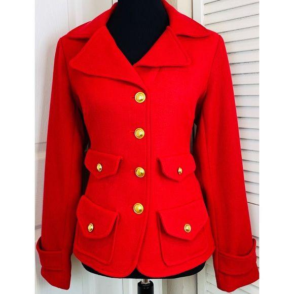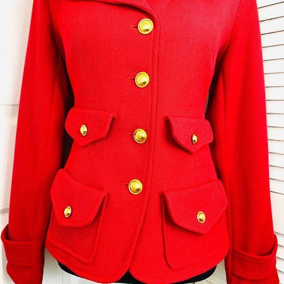 Joan Rivers Classic’s Collection Women’s Long Sleeve Faux belt at back with gold ribbed buttons Red Tweed Textured Blazer