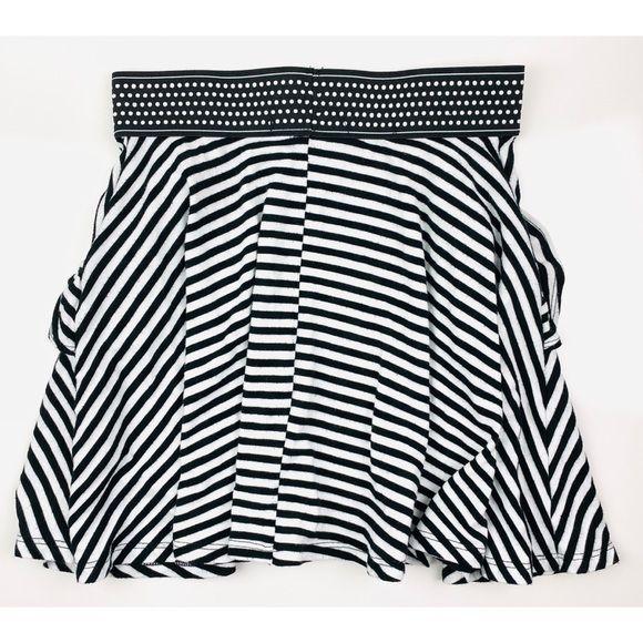 Living Doll Los Angeles Striped Mini Skirt with Polka Dot Elastic Waistband and two ruffle pockets