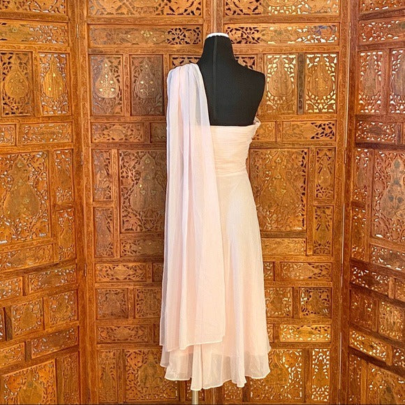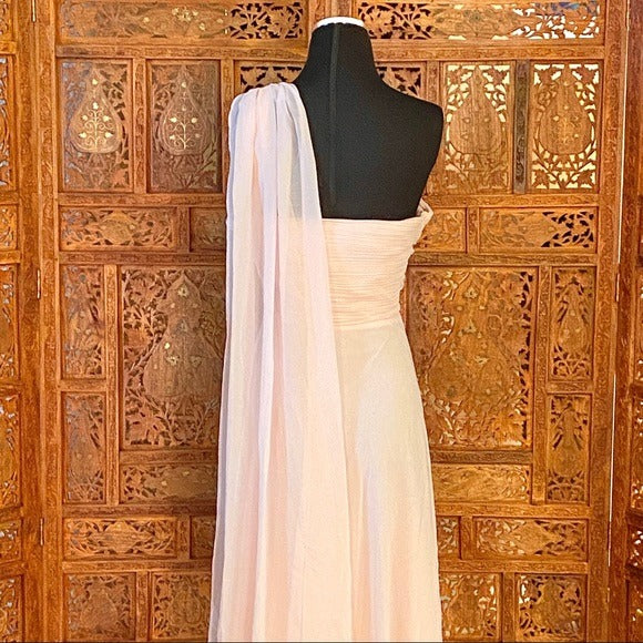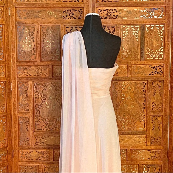 One-Shoulder Chiffon Bridesmaid Dress w/Pashmina Scarf Attached NWT
