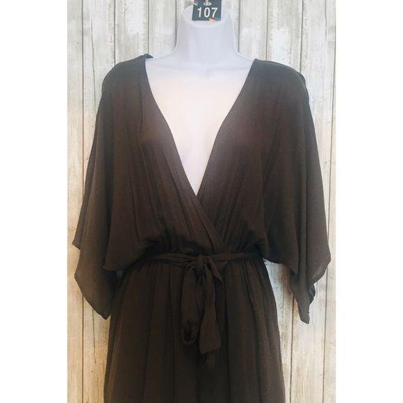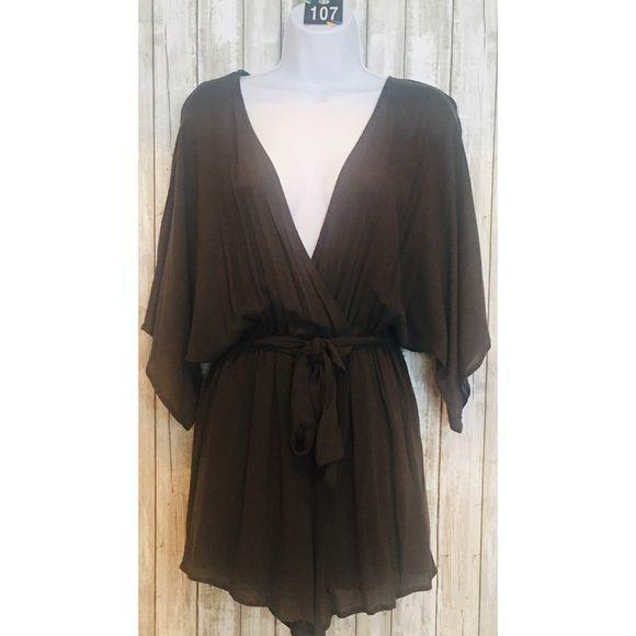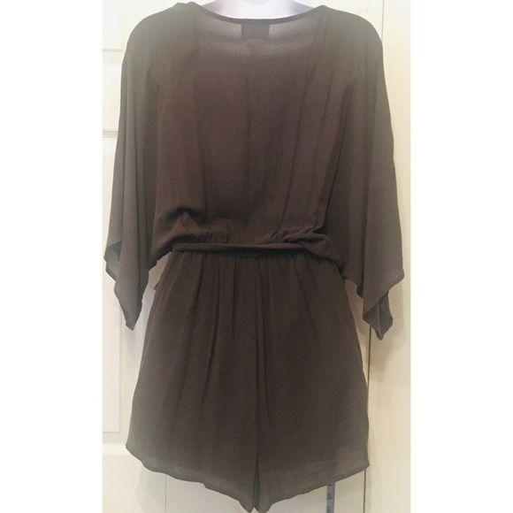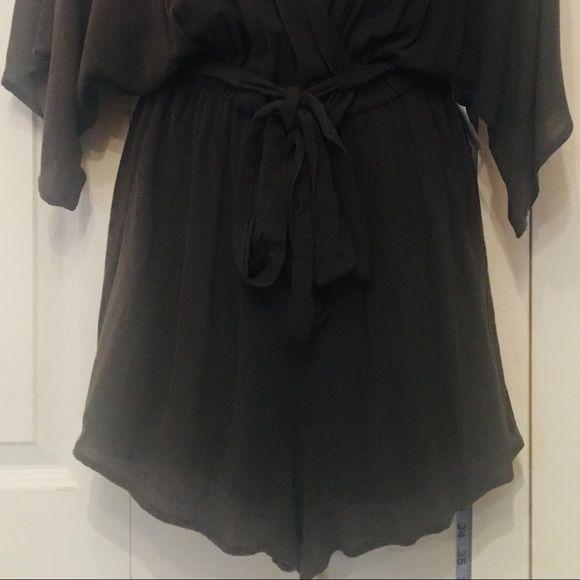 Emory Park Plunging Neckline Romper Khaki Green