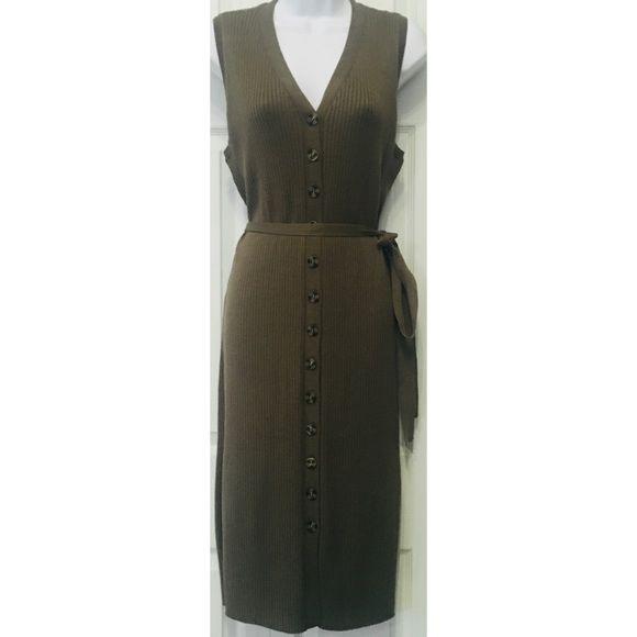 Sak’s Off 5th Olive & Oak Wear it 2-Way Tie-Side Sleeveless Heather Sweater Button down dress or Long Cardigan Sweater