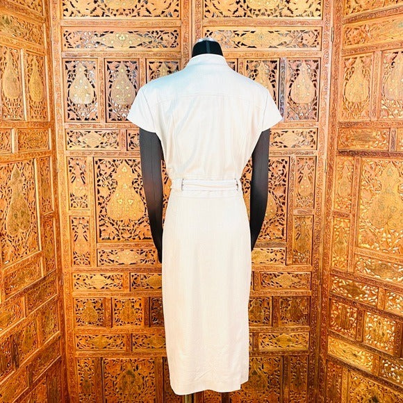 Sandra Darren Mandarin Collar Button Down Closure Dress with wrap tie belt
