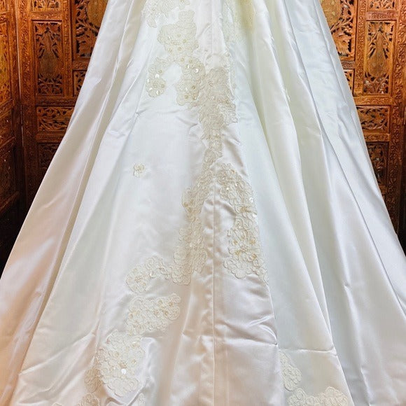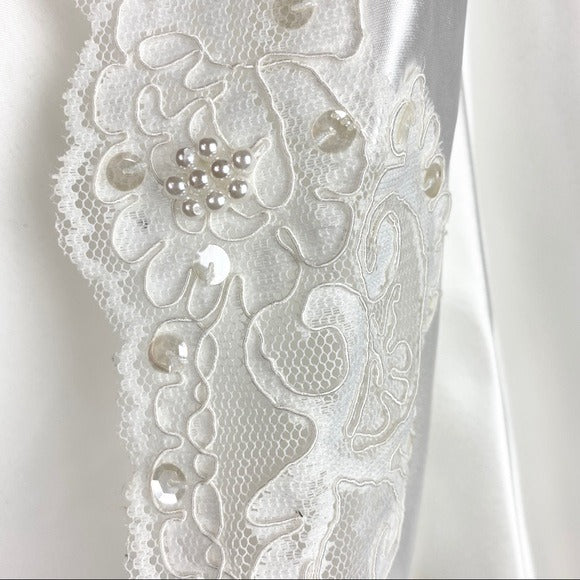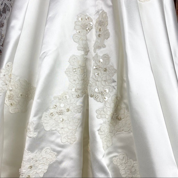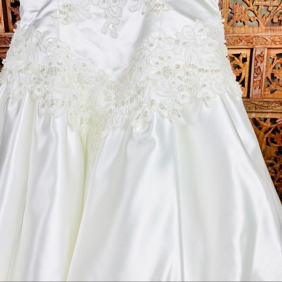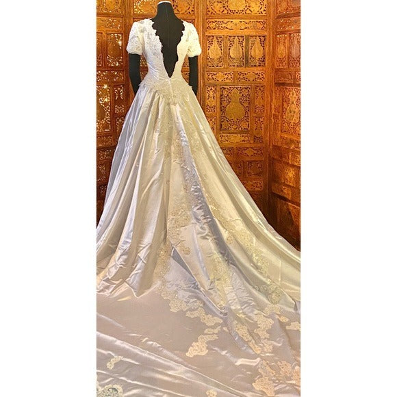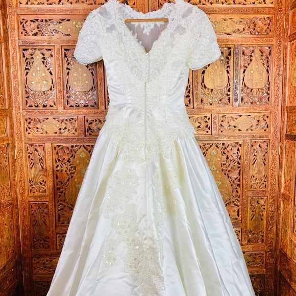 Santa Monica Couture Collection Wedding Gown, Short Sleeve, Lace with Embroidered glass beading, Stored sealed in Box