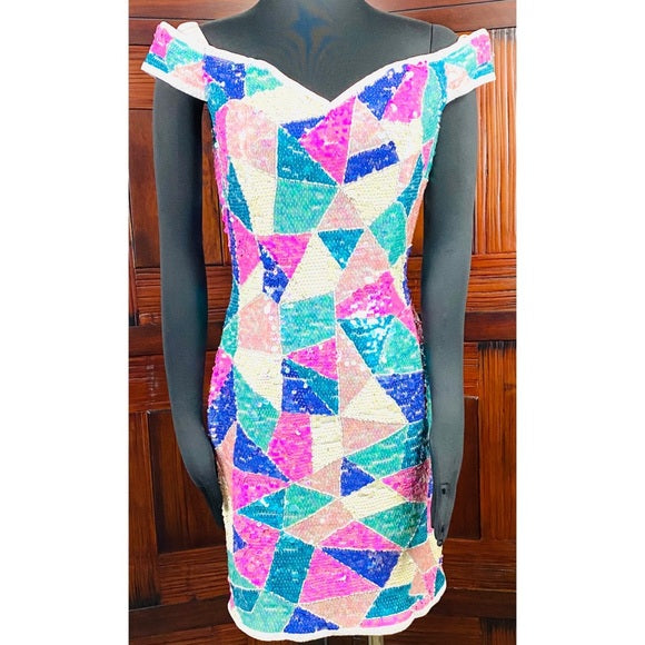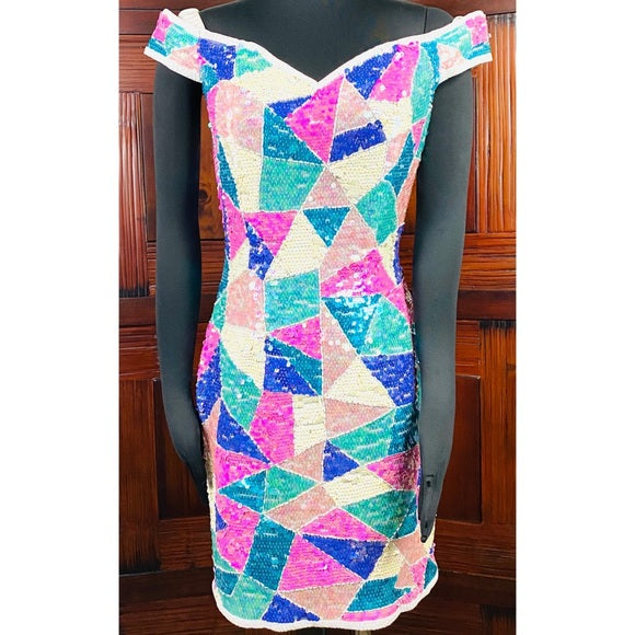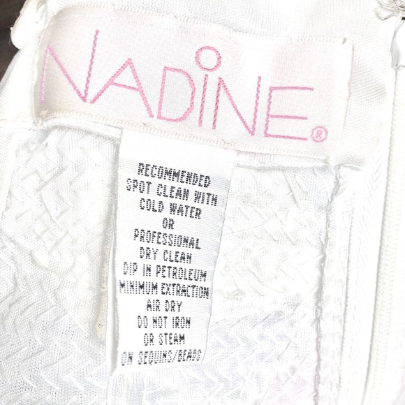 Vintage Rare Nadine Women’s Hand Beaded Sparkly Sequin Off the Shoulder with boning lining foundation support in shoulder back, front, and sides. Closure zips with small hook clasp and kick split at bottom in the back. Formal Gown Prom Party Dress. I wish Poshmark allowed video with our images. Beautiful Condition